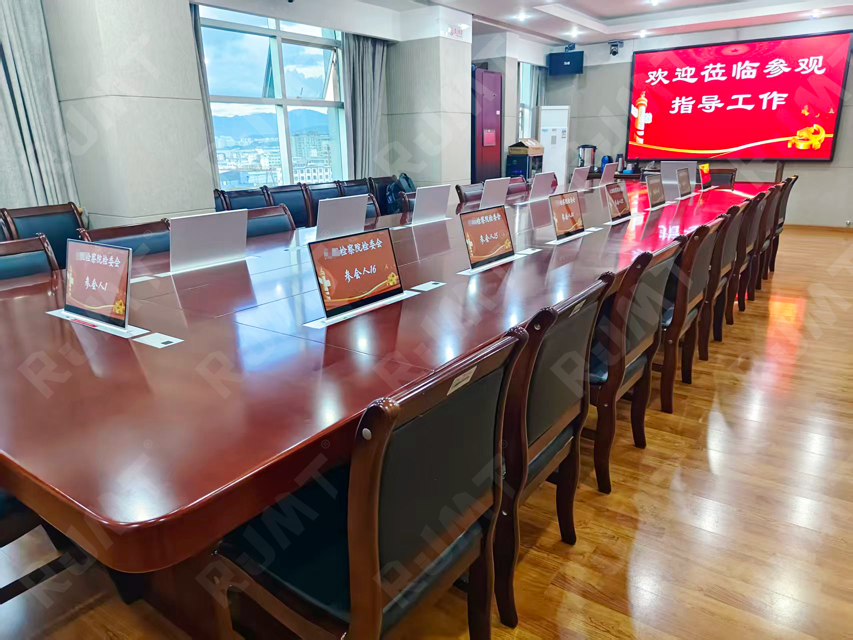 ? 硬件設(shè)施升級:配備智能升降一體機(jī)、投影控制器、智能語音轉(zhuǎn)寫系統(tǒng)等硬件設(shè)備,為無紙化會議提供必要的硬件支撐。